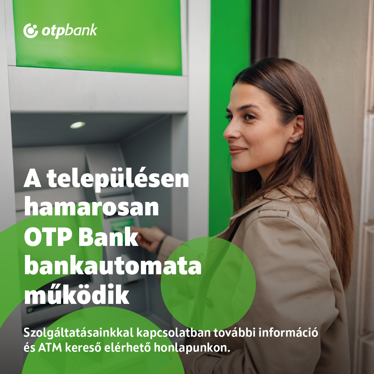 Tisztelt Lakosság! Szeretnénk tájékoztatni mindenkit, hogy Kamut településen hamarosan OTP Bank bankautomata fog üzemelni. Helyszín: 5673 Kamut, Petőfi utca 47. (Művelődési Ház)